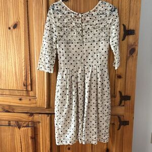 Sweetheart neckline. Lined in polyester. Back zipper with a clasp at neckline. Body of dress is nylon and spandex. Pit to pit measure is 15 inches. Length is 36 inches.