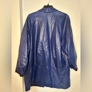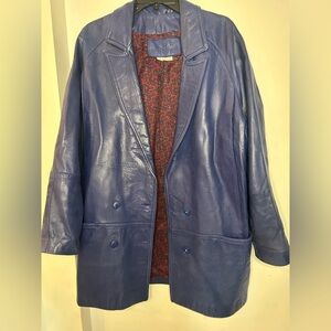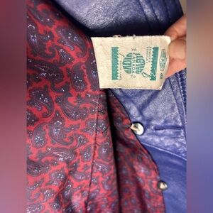 80s blue vintage leather bagatelle jacket union made with paisley lining size 8