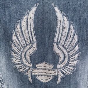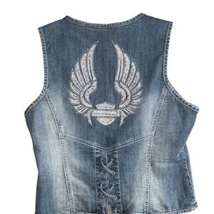 HARLEY DAVIDSON WOMENS DENIM JEAN ANGEL WING RHINESTONE VEST JACKET LARGE