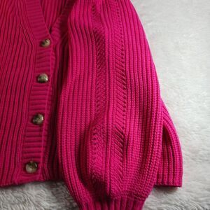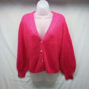 Madison Gray Women’s Pink 4 Button Cardigan Knit Balloon Sleeve V-Neck Size L