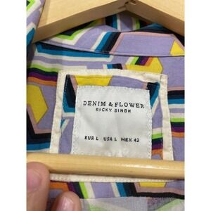 Denim & Flower Shirt Mens Large Purple Geometric Abstract Viscose Excellent L