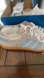 Stylish Adidas sneakers with light blue accents. Features classic stripes and comfortable fit.
