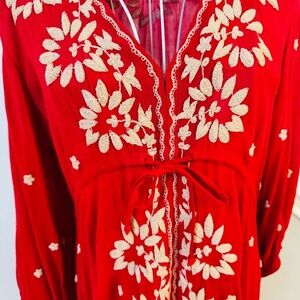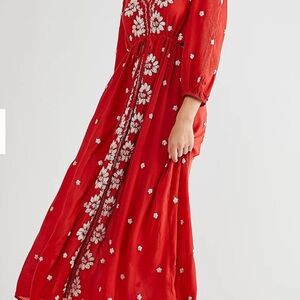 Free People Embroidered Fable Floral Maxi Dress XS oversized