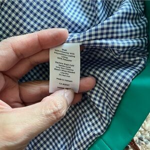 Talbots Petite Women’s Rain Coat Jacket Blue Green Gingham Hooded Zip Preppy