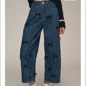 Anthropologie Pilcro The Kenna Mid-Rise Heritage Barrel Jeans Women 28P Petite Velvet Bow Edition