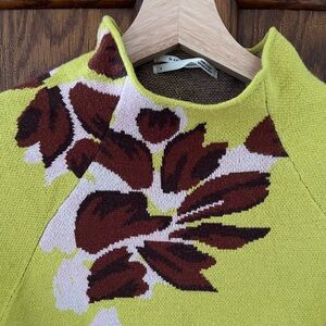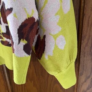 Anthropologie Beatriz Mock Neck Floral Sweater in Chartreuse size S VGC