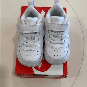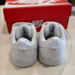 Easy-to-wear Nike sneakers with Velcro strap. Perfect for active kids. Stylish Court Borough Low 2, brand new in box, color white size 4 :)