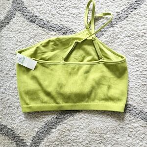 Brand new with tags, Aerie Ribbed Lime Green Ine Shoulder Crop Sports Bra M NWT. Double adjustable one shoulder straps, inner sports bra lining. Dark Lime Green