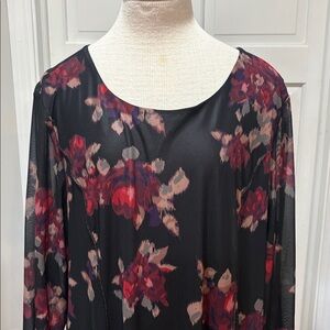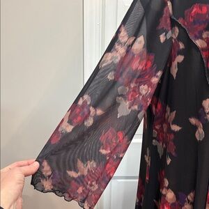Coldwater Creek sz 2X black floral maxi dress with sheer sleeves