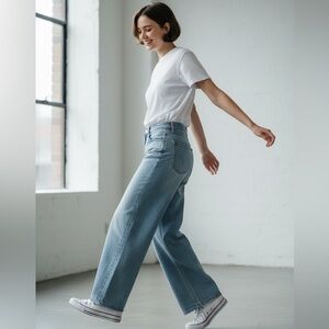 Pre-owned Old Navy WOW Wide Leg Jeans. Pre-Owned excellent condition. Women’s Size 4. Light blue hue for a fresh look. Ideal for casual wear, or pair with a sweater. W-14”, Hips 18.25” Hips. Rise 10”. Inseam 30”. Pant leg opening 9.25”. Model pic is AI generated.