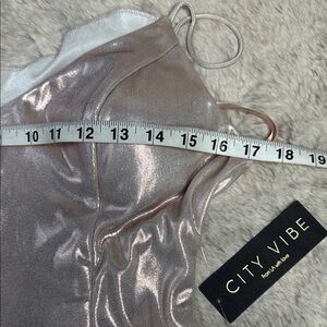 City Vibe | Asymmetrical Metallic Pale Pink Dress, Size 11 NWT
