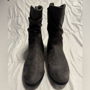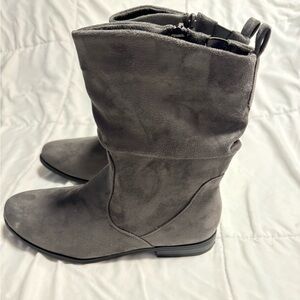 VJH Confort Women's Mid Calf Boots, Almond Round Toe Low Heel Comfort Dress Slouchy Booties. Memory Foam, New without tags, side zipper for easy on & off. Neutral grey color, faux suede look, size 9. One small blemish on the front toe area of the left boot as shown in pics. Smoke & pet free home. Bundle to save - I have lots of boots & shoes!