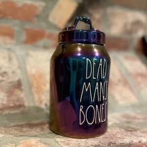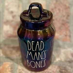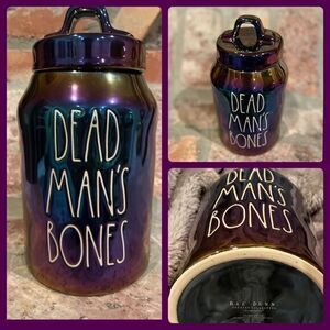 Rae Dunn Dead’s Man’s Bones unique iridescent canister very rare Halloween Decor