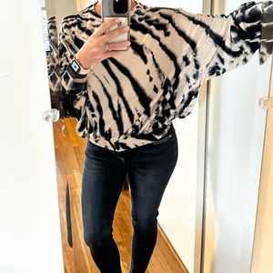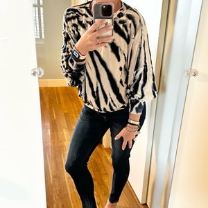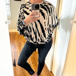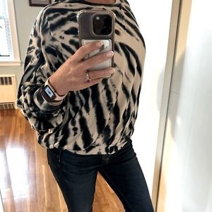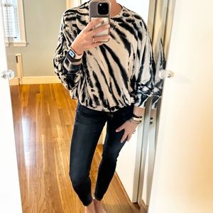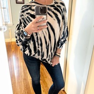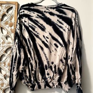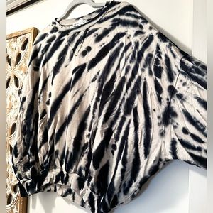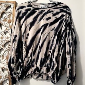Young Fabulous & Broke, YFB, tie dye sweatshirt, oversized sweater, dolman sleeve top, lounge chic, soft knit top, neutral tie dye, black cream sweater, casual chic, boho sweatshirt, relaxed fit top, size medium