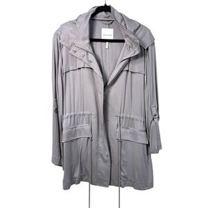Avec Les Filles Women's Grey Hooded Utility Anorak Lyocell Jacket Size L $374