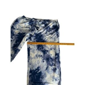 Belle Beach Kim Gravel Blue Tie Dye Wide Leg Crop Pants Tassel Drawstring 3XT