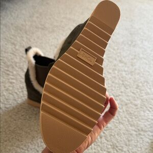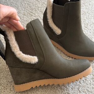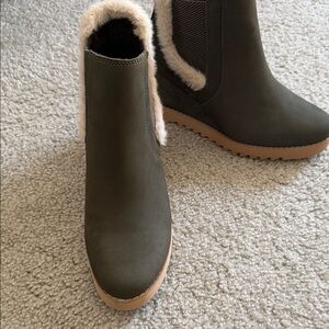 Stylish dark green booties by Toms. Features cozy faux fur lining. Ideal for everyday wear.