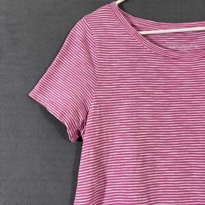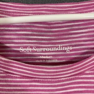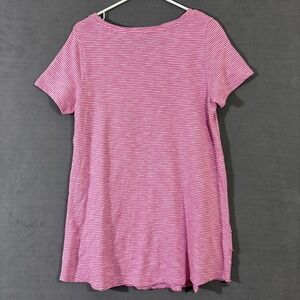 Soft Surroundings M Cotton Tunic Pink White Stripe Stretch Short Sleeve