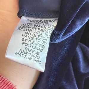 Umgee • Embroidered Crushed Velvet Navy Blue Puff Sleeve Sz Medium Preppy Casual