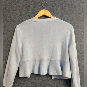 Talbots Soft Blue Knit Sweater Cardigan. Ruffle Edge Cropped Spring Staple Med.