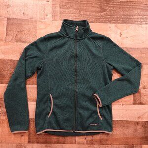 Eddie Bauer Full Zip Fleece Jacket Women’s M Green Heather Outdoor Warm Layer