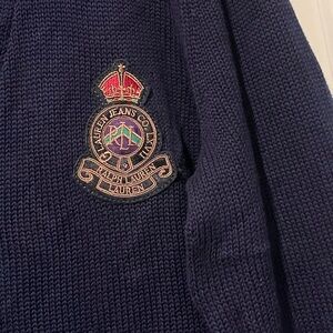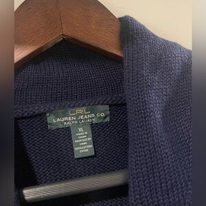 Lauren Ralph Lauren Knitted Cowl Neck Embroidered Cardigan 100% Cotton Size XL