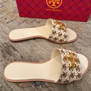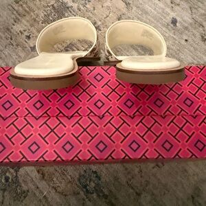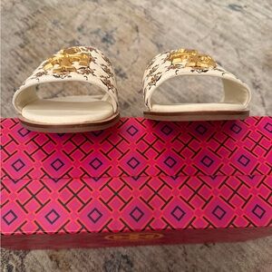 Elegant Tory Burch sandals with ivory and tan design. Perfect for casual elegance. Worn twice, in pristine condition!