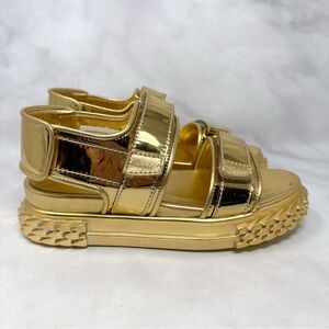 NEW Giuseppe Zanotti Blabber Gummy Chrome Gold Leather Platform Dad Sandals 36