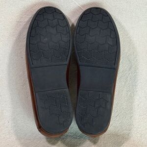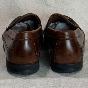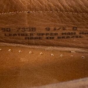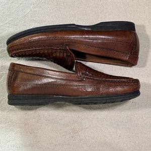 Previously worn; leather weave vamp; leather uppers; cushioned leather insoles; fully leather lined; rubber outsoles. Shoes are in very good condition; solemn wear at the heels; slight variations in color. #dockers #bootandshoetraders