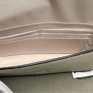 High-contrast logo lettering boldy brands this pebbled leather crossbody bag done in a just-the-essentials size with interchangeable straps for carrying versatility.