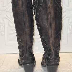 size 8 1/2 Frye Mustang Grommet Tall 72247 Womens Black Leather Casual Dress Boots