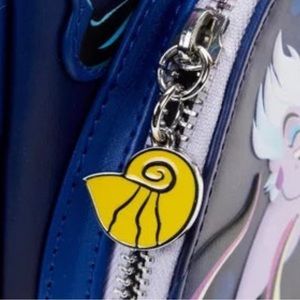 Wrap your tentacles around this Loungefly Disney The Little Mermaid Ursula Lair Mini Backpack—before it swims away! On the front zipped compartment, Ariel and Ursula gather around the cauldron as Ursula conjures up evil, to put the squeeze on unfortunate souls. An image of Eric rises from the cauldron, while Flotsam and Jetsam circle overhead, in a detailed, black choral structure that comes to life in applique and glow-in-the-dark features. Debossed bubbles add more layers of features, and an enamel charm of the seashell from Ursula’s necklace tops off the look. Meanwhile, on the side pockets, Flounder and Sebastian look on, terrified. On the back, the golden contract that Ariel has signed makes an appearance. This mini backpack is the perfect accessory for any Disney outing—or for turning everyday moments into swimmingly magical adventures.