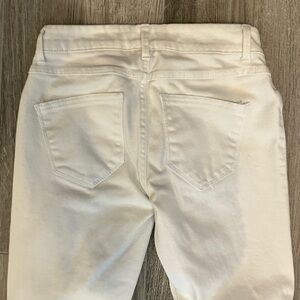 Chic white skinny jeans by GENERRA. Features distressed detailing. Ideal for casual wear.