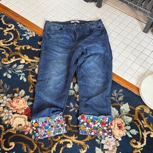 Colorful Embellished Crop Jeans- worn a bunch but great