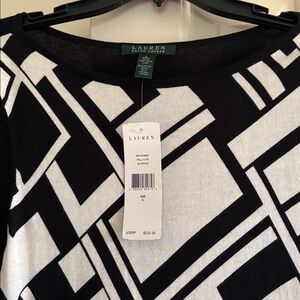 NWT Ralph Lauren White and Black Abstract Dress, L