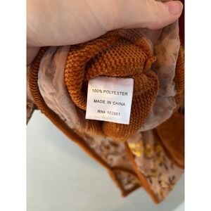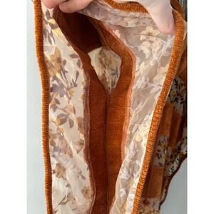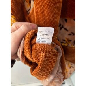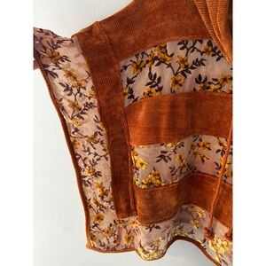 Adore Women Burnt Orange Corduroy Floral Mesh Cowl Neck Poncho Top Small Boho