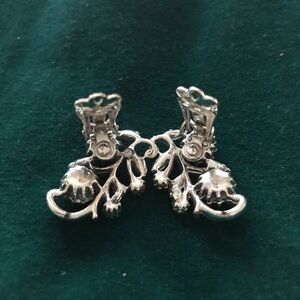 Clip back earrings, signed Coro. Beautiful floral design in silver with aurora borealis stones. In excellent vintage condition, measurements shown in pictures.