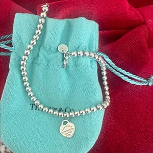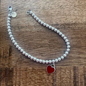 Tiffany & Co sterling silver beaded bracelet with red heart