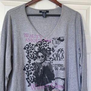 Style & Co. Gray and Black Graphic Long Sleeve Top