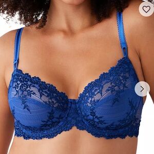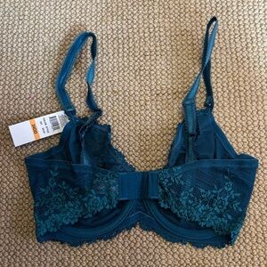 NWT Embrace Lace Underwire bra - classic, beautiful design in unlined lace. Seamed cups for lift and natural shaping. Fully adjustable, decorative straps. Two-row hook and eye closure. Beautiful color, “blue coral,” which is a deep teal. Blue and nude colors shown in photos just to show shape and design. Super supportive and comfortable!