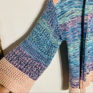 Style & Co Marled Knit crochet pastel spring open front cardigan sweater xs