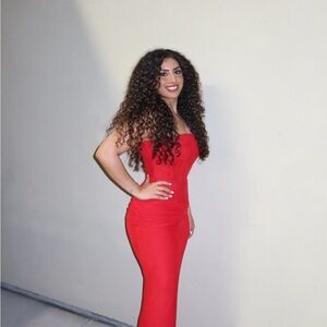 I will be clearing out a lot of things to follow. Wore this beautiful red TWO piece set once as pictured! Truly like new condition. No imperfections!