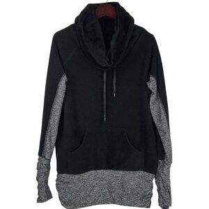 Lululemon Don’t Hurry Be Happy Black & Heather Grey Cowl Neck Fleece Pullover 6