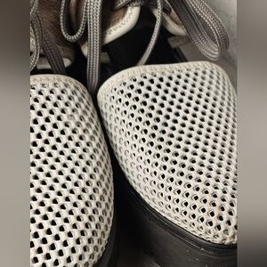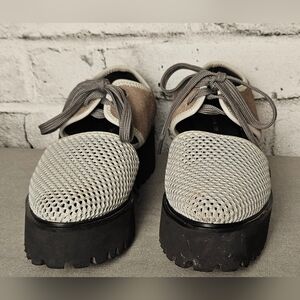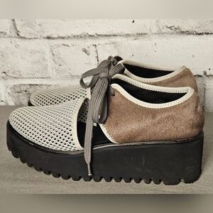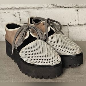 ALL BLACK Perforated Leather Platform Lace Up Sneakers Gray Beige Size 38