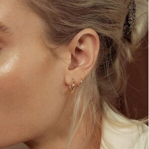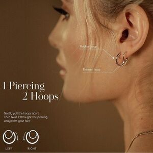 Spiral Hoop Twist Double Earrings - 14K Helix Spiral Earrings created faux double piercing look. Never worn!