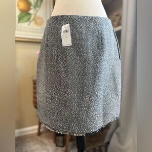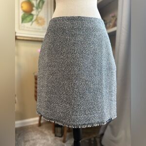 Chic tweed mini skirt with fringe/raw hem by Banana Republic. Classic navy blue and white design. Perfect for versatile styling.