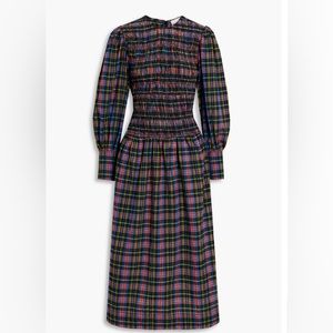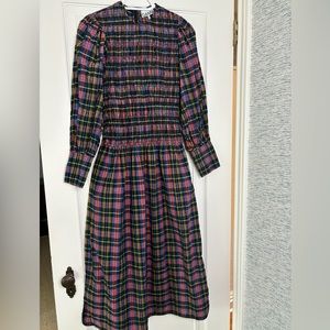 Chic long sleeve dress by Ganni. Features a vibrant multicolor plaid pattern. Perfect for any occasion.