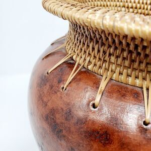 Decorative Ceramic/Clay Vase with Woven Fibers