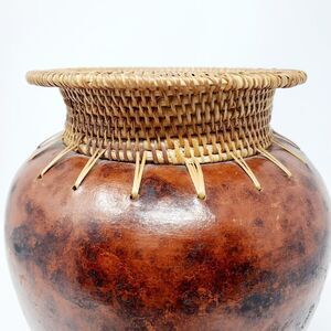 Decorative Ceramic/Clay Vase with Woven Fibers. EUC.