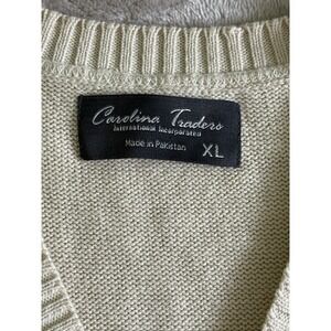 Vintage Sweater Vest Men XL Cream V Neck Carolina Traders Preppy Grandpa